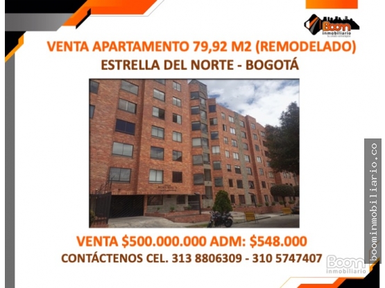 VENTA APARTAMENTO 79,92 M2 (REMODELADO) BARRIO ESTRELLA DEL NORTE - BOGOTÁ