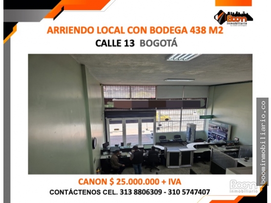 ARRIENDO LOCAL CON BODEGA 438 M2 SOBRE CALLE 13 BOGOTÁ