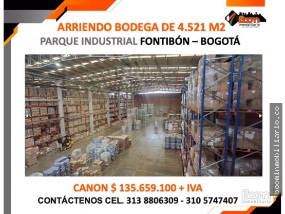 ARRIENDO BODEGA DE 4.521 M2 PARQUE INDUSTRIAL FONTIBÓN – BOGOTÁ
