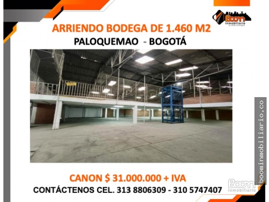 ARRIENDO BODEGA DE 1.460 M2 EN PALOQUEMAO - BOGOTÁ