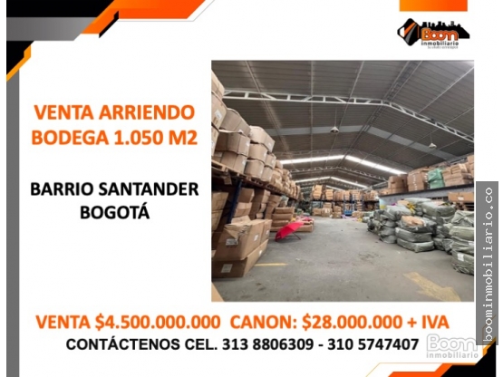 VENTA ARRIENDO BODEGA 1.050 M2 BARRIO SANTANDER - BOGOTA