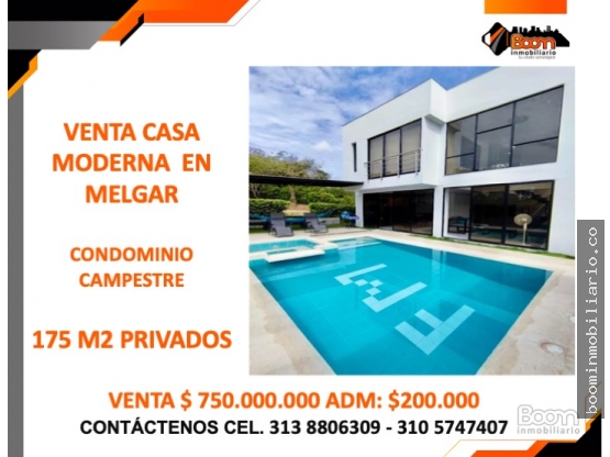VENTA CASA MODERNA EN MELGAR - CONDOMINIO CAMPESTRE EL PALMAR