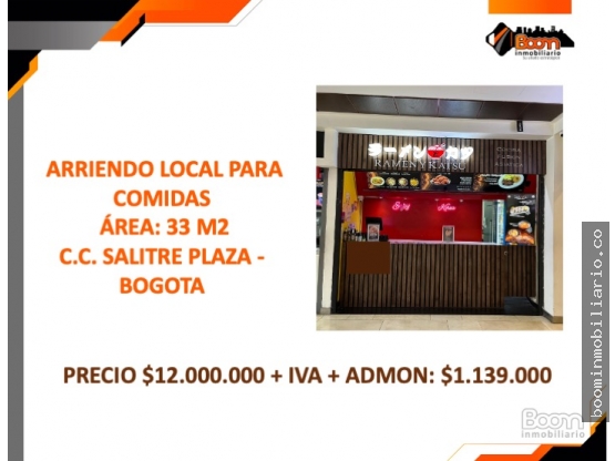 ARRIENDO LOCAL PARA COMIDAS C.C. SALITRE PLAZA - BOGOTA