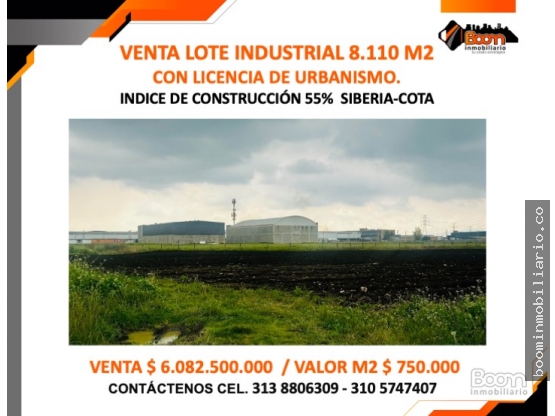 VENTA LOTE INDUSTRIAL 8.110 M2 CON LICENCIA DE URBANISMO.